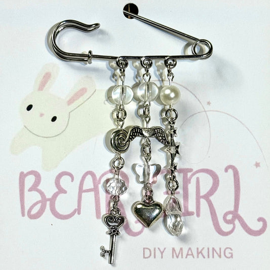 Kawaii Fairycore Safety Pin Brooch | Heart, Star & Magic Charm Dangles(Pre-sale)